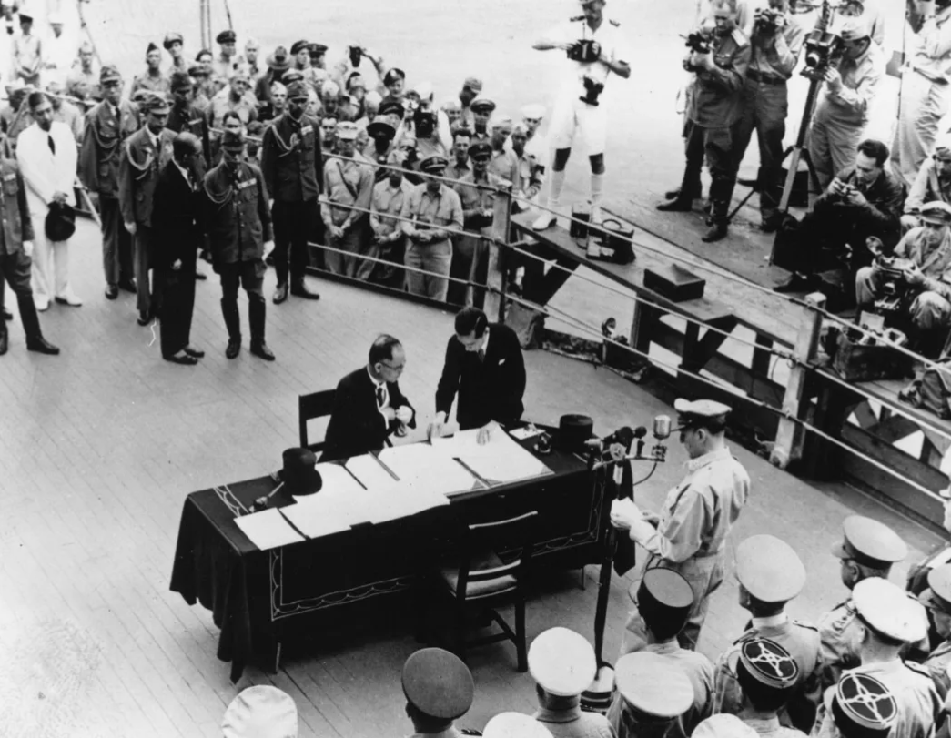 日本代表登上美军“密苏里号”军舰