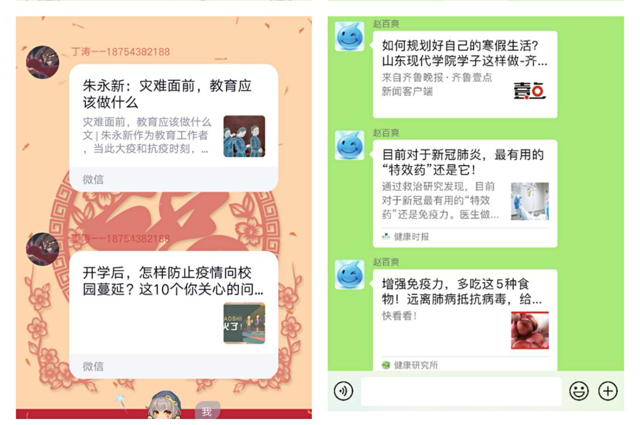 此次教育活动意在提高同学们热爱珍爱生命的意识,积极锻炼身体,强健体魄,健康积极心态,对于有疑惑、困惑的学生开展心理健康教育和心理疏导。人文学院丁涛,赵百爽等导员特此为学生分享生命健康教育主题的相关文章,并认真强调每一位学生学习到位,增长课外知识。每一位学子积极响应号召,虽然你我不在身边,但氛围融洽而和谐。
