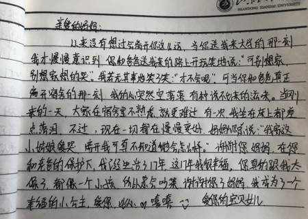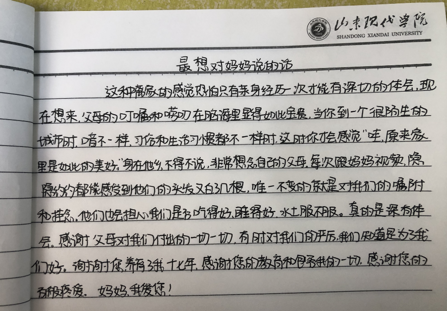 本次活动的最后,同学们都纷纷在自己的学习笔记上写出了自己的最想对妈妈说的话,没有华丽的辞藻,都是作为子女对于父母最真挚的话语。