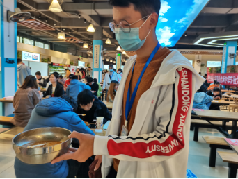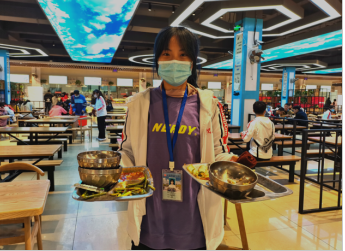 当你走进餐厅,便能见到他们穿梭于餐桌之间。在餐厅内,志愿者们秉持,文明礼貌,严于守己的原则,积极帮助阿姨大叔打扫卫生,维持排队秩序,及时将餐桌垃圾收走。打饭时温馨提示,同学们适量打饭,响应光盘行动。与食堂工作人员畅谈感受,通过了解知道了三餐时间是工作人员最繁忙的时刻,堆积如山的餐盘、饭碗,需要及时地收拾、清理,以供应同学们的使用。大家也感受到了餐厅工作人员辛劳。