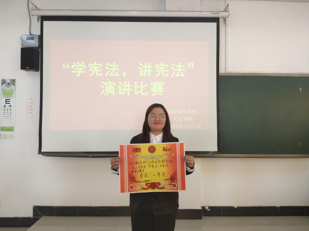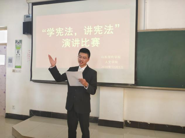 法,国之权衡也,时之准绳也。法治既是现代国家的重要特征,又是社会和谐的根本保证。治国凭圭臬,安邦靠准绳。宪法的顺利实施,不仅在于国家,更在于人民。对此,为提升学生法律素养,维护宪法权威,弘扬宪法精神,增强法治观念。山东现代学院人文学院于2020年12月3日在知敬楼516举行“宪在行动,法润现代”为主题的演讲比赛。