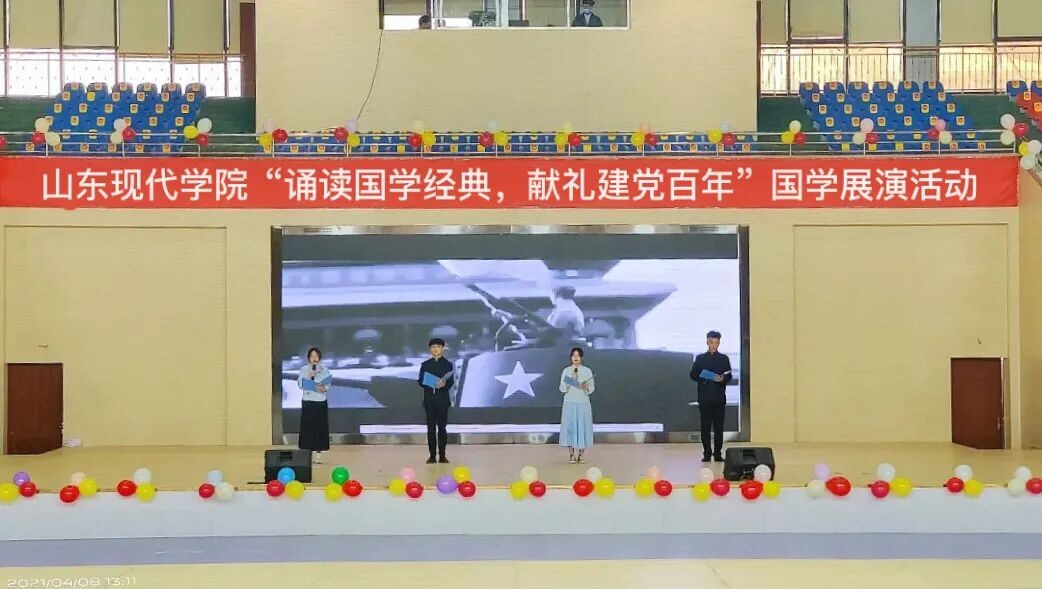4月8日,为庆祝建党100周年,继承和弘扬中华优秀国学文化,由学生处主办、人文经管学院承办的“诵读国学经典,献礼建党百年”国学经典展演活动在体育馆举行,李炜恒、学生处副处长杨冠峰、学生处胡炜、马雪迎、许建栋,以及各二级学院学管干部、老师和1500余名学生代表参加活动。