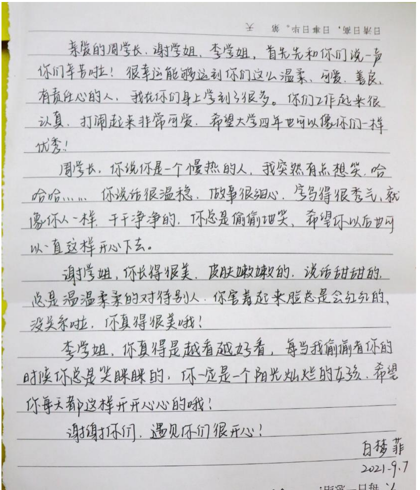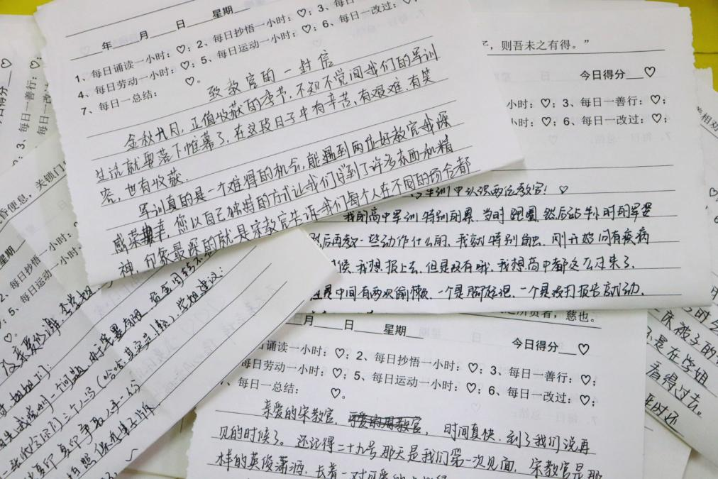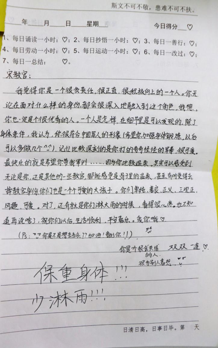 同学们纷纷拿起笔回忆与教官的点点滴滴