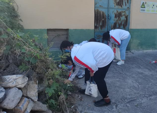 认真地把垃圾捡干净