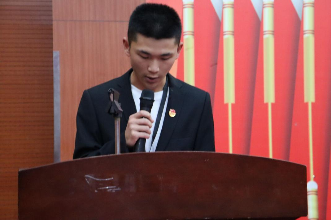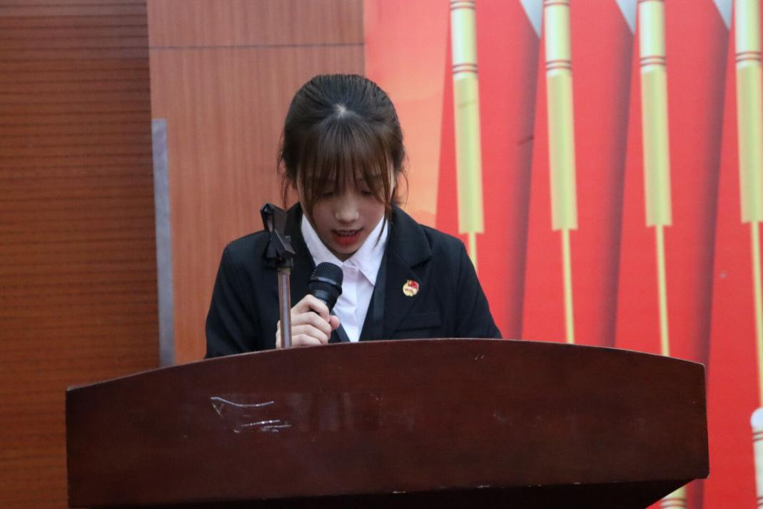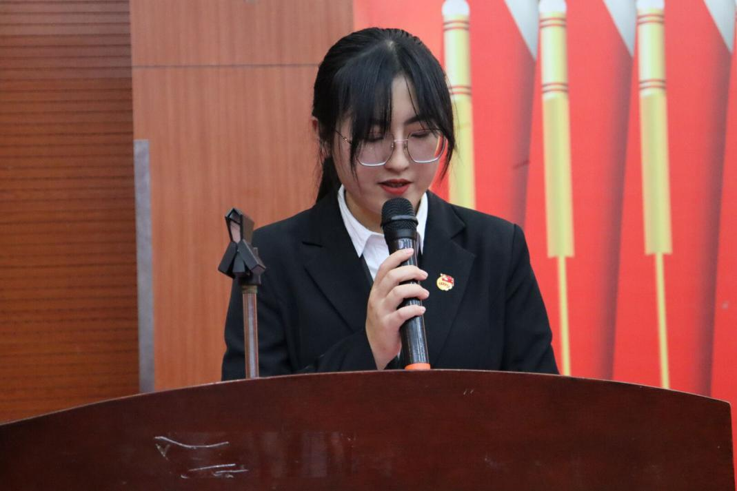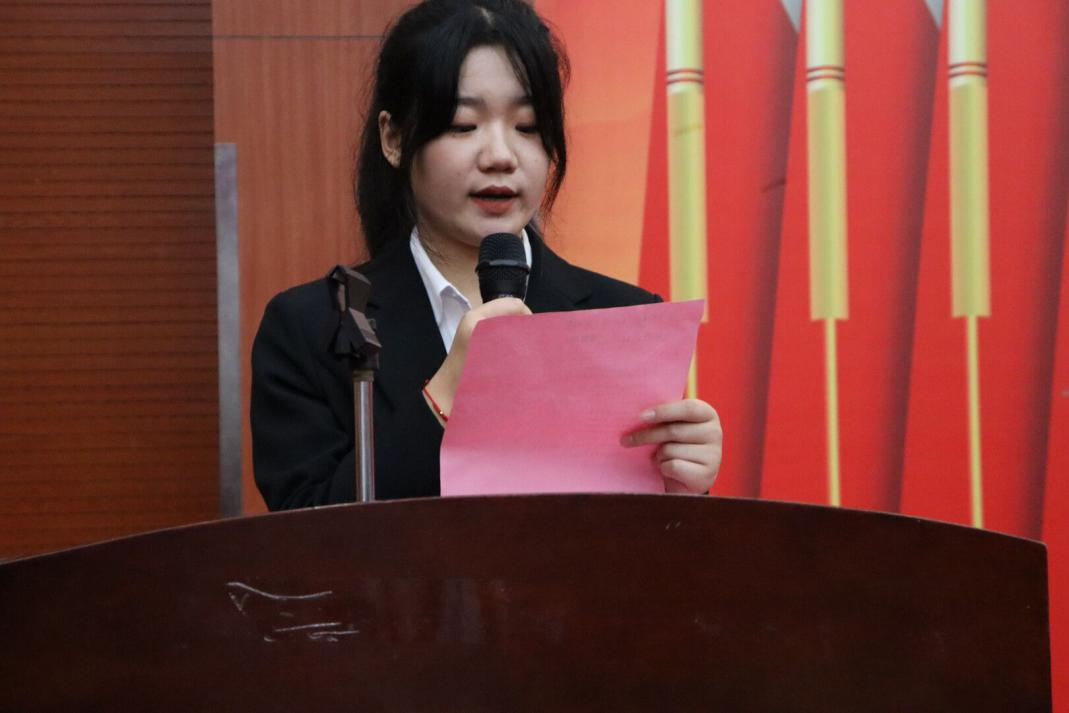 人文与管理学院学生会主席许言娇同学上台发言,以自身为例提出作为一名学生干部应时刻以积极进取的态度服务学生,服务自己,提高自己的做事能力。