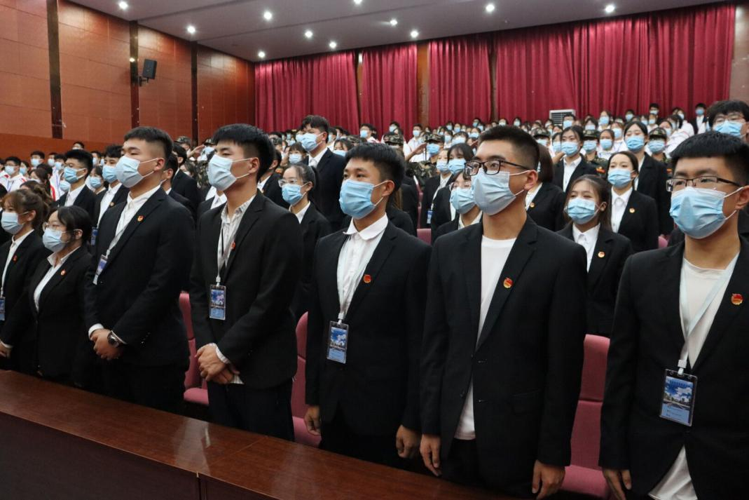 本次大会共分为十二项。会议伊始,升国旗,奏唱国歌。鲜艳的红旗冉冉升起,响亮的歌声响彻整个会场。所有的人员一同起立,庄严肃立,拉开了大会的序幕。
