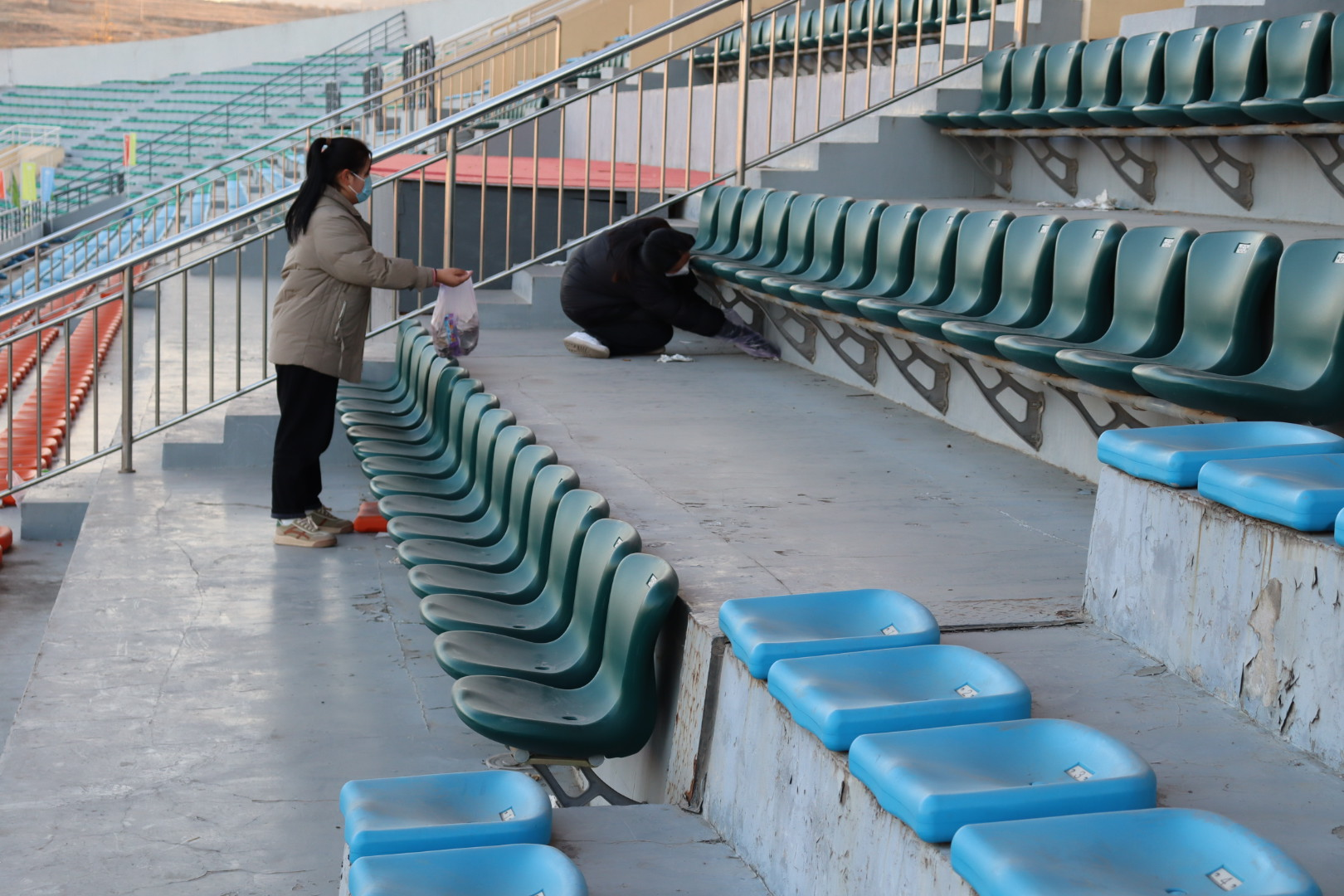 万人体育场观众席座位较多,同学们分工明确。由于地点的限制,相邻板凳间的位置所以有些小,但同学们依然已以足够饱满的热情投入到此次打扫卫生的工作中去。同学们不怕脏,不怕累,把他们为现代贡献力量的决心充分体现了出来。