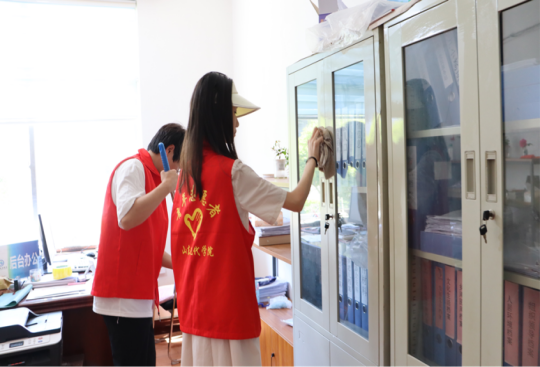 志愿者们用自己的双手为鸡山村居委会工作区域创造洁净、优美的卫生环境。工作人员叮嘱同学们不管在学校和社区,都要开展卫生整治为抓手,全力打造舒适、健康、清洁、卫生的学习生活环境,共同建设舒适、宜居、优美的学习生活环境。