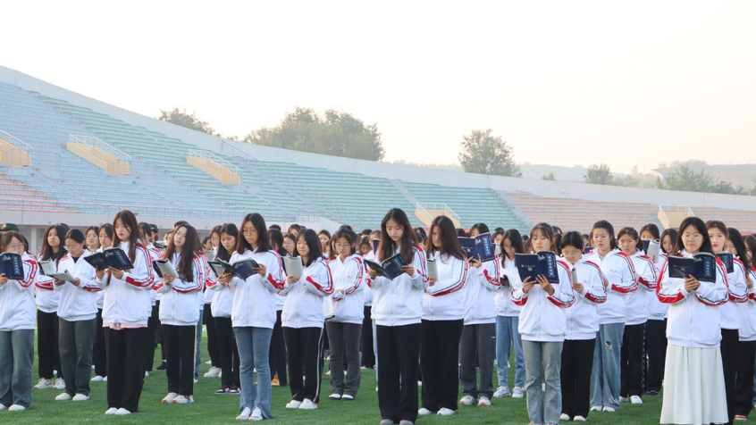 最后辅导员代表海玉爱老师总结发言并强调,每一名现代师生,都要牢记“天道酬勤”的校训,发扬“自强不息,厚德载物”的现代精神,每天认真诵读经典,启智润心,进德修业,每日落实“七个一”,让经典滋润我们的心田,伴着我们成长,使文明溢满校园。