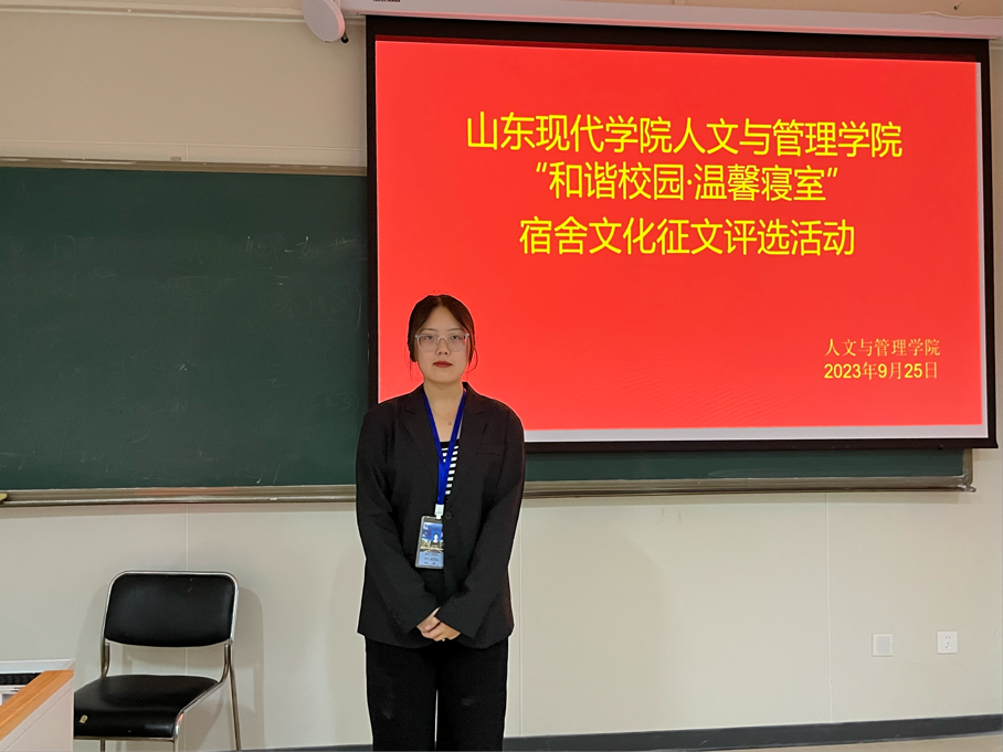 为了提高当代大学生的文化修养,给写作爱好者提供一个展示自我的平台,同时丰富大学生的文化生活,展现和谐温馨宿舍文化风采,由共青团山东现代学院委员会主办,人文与管理学院团总支承办的“和谐校园·温馨寝室”宿舍文化征文评选活动于9月25日在博学楼601圆满举行。