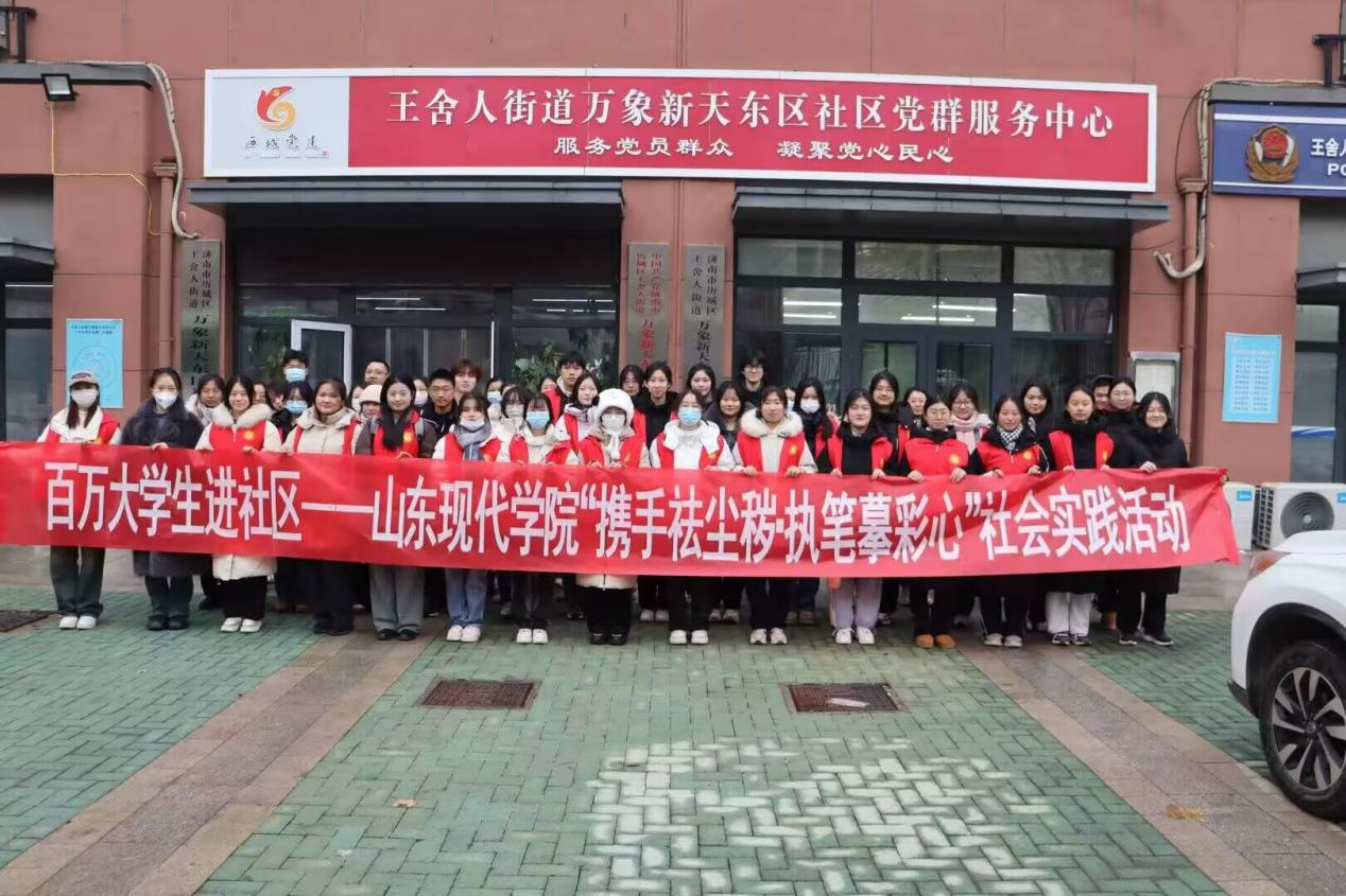 为全面推进“志愿服务进社区”,巩固教育实践成果,引导大学生在志愿服务中绽放青春风采,由共青团山东现代学院委员会举办,人文与管理学院团总支承办的“携手祛尘秽,执笔摹彩心”百万大学生进社区活动于12月13日在历城区王舍人街道举行。