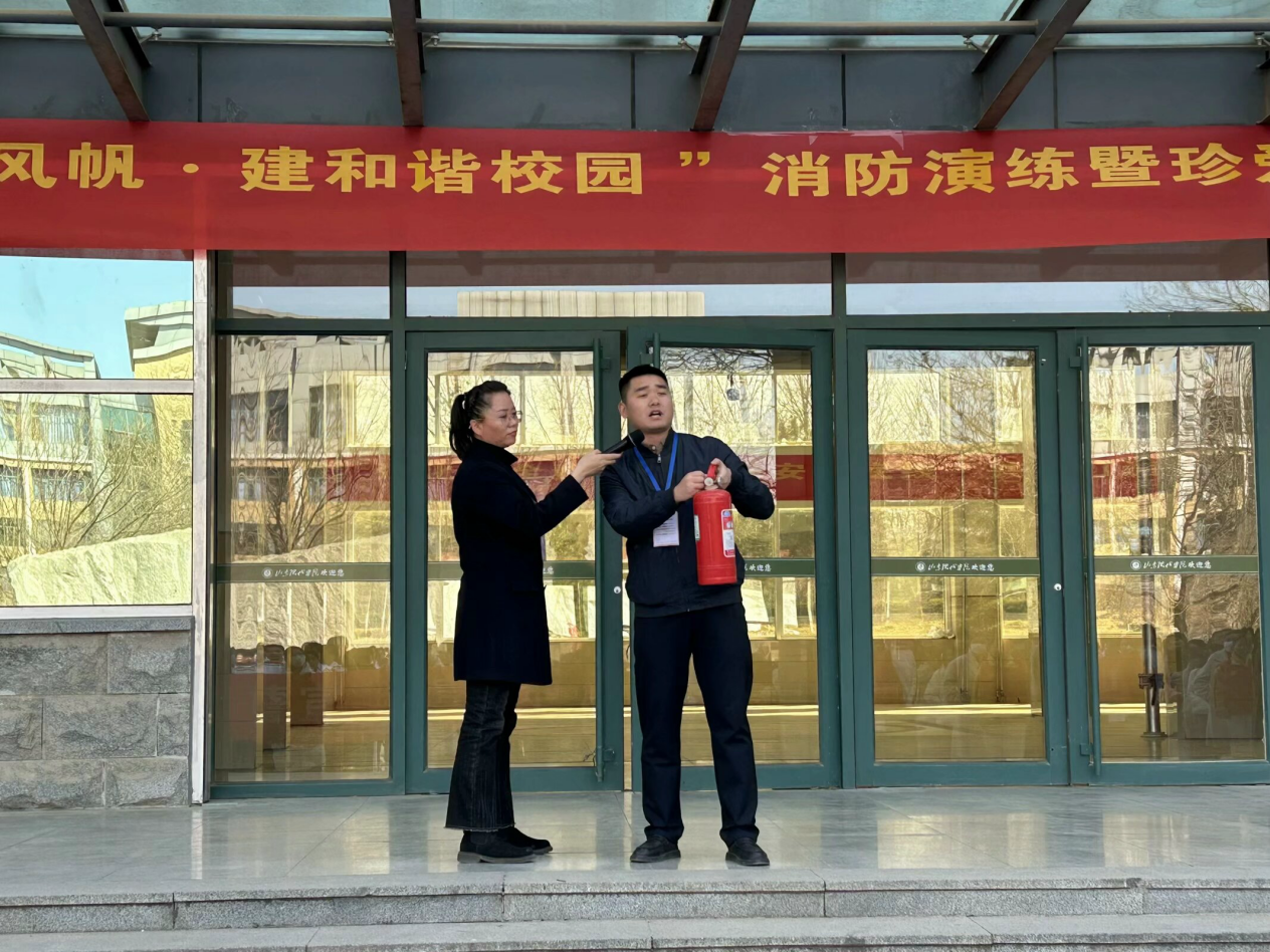 演练结束后,由学生处副处长徐志峰老师致辞,并亲身向学生们演示了灭火器的正确的使用方法。