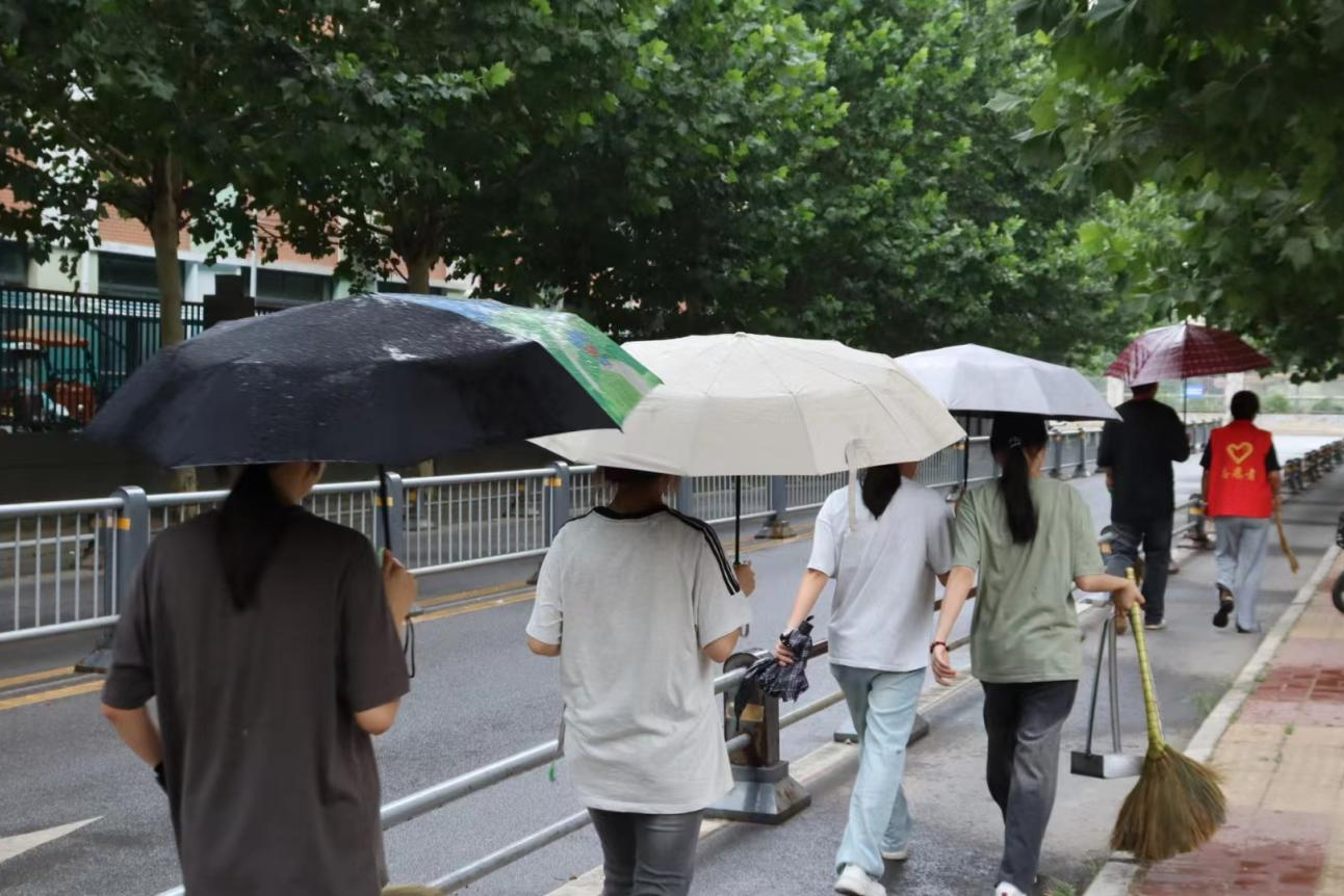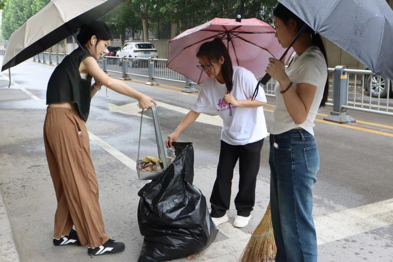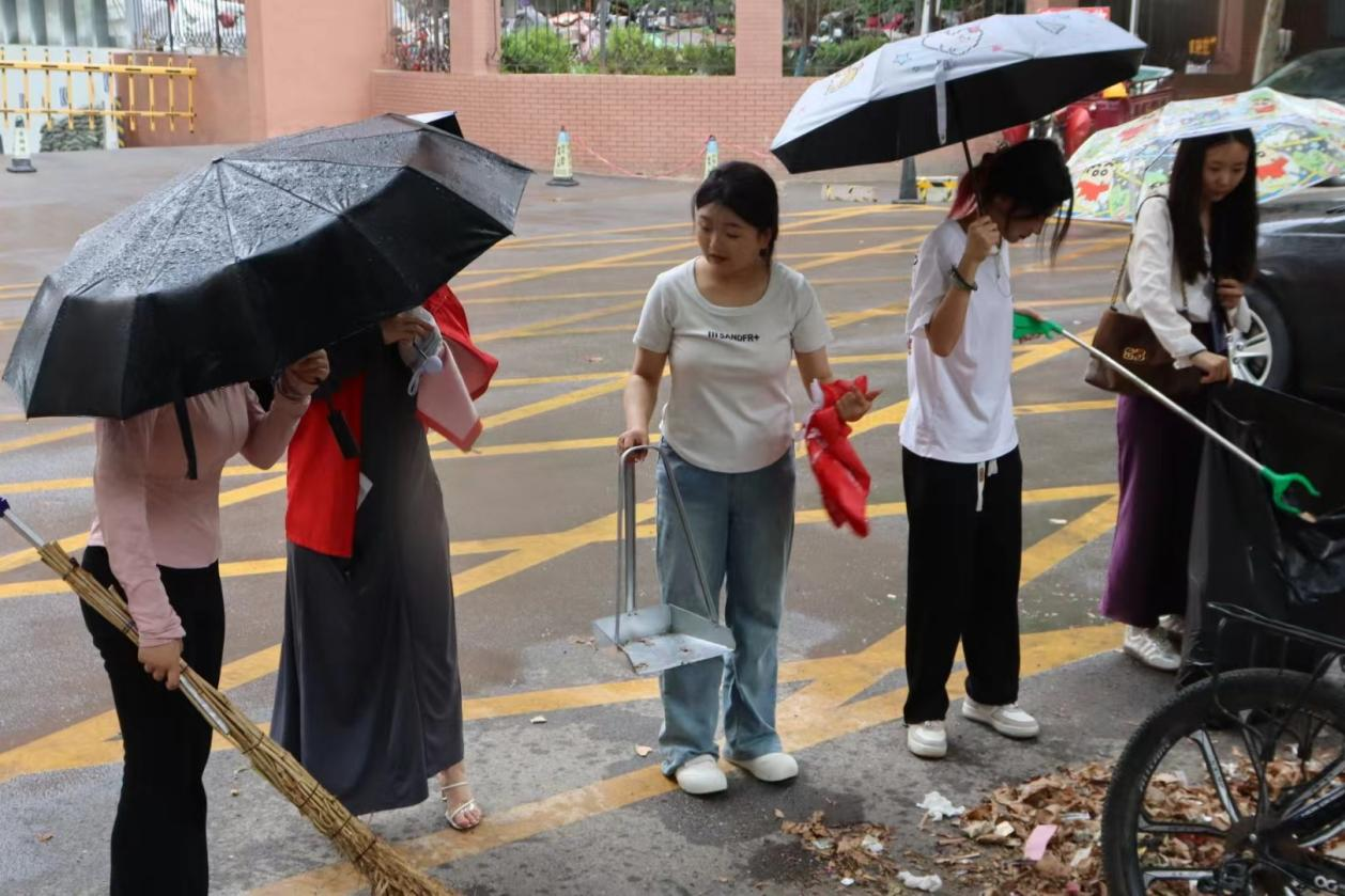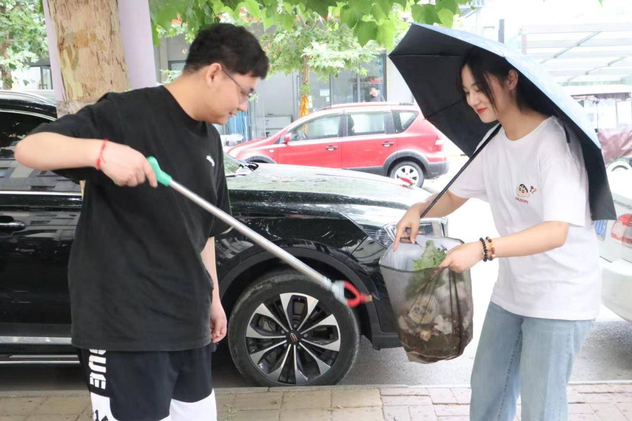 虽然下着小雨,但同学们依旧热情不减。他们手持清洁工具,分工合作,一次又一次弯下腰,对社区的垃圾进行了全面清理,包括街道、绿化带等区域。为了维护市容,保障道路畅通,同学们还集中清理了乱停乱放的自行车,有力得消除了城市“牛皮藓”,减少因寻找停车位而产生的烦恼和不便。同时,同学们还积极向居民宣传环保知识,引导大家养成垃圾分类的好习惯,共同为社区环境的改善贡献力量。