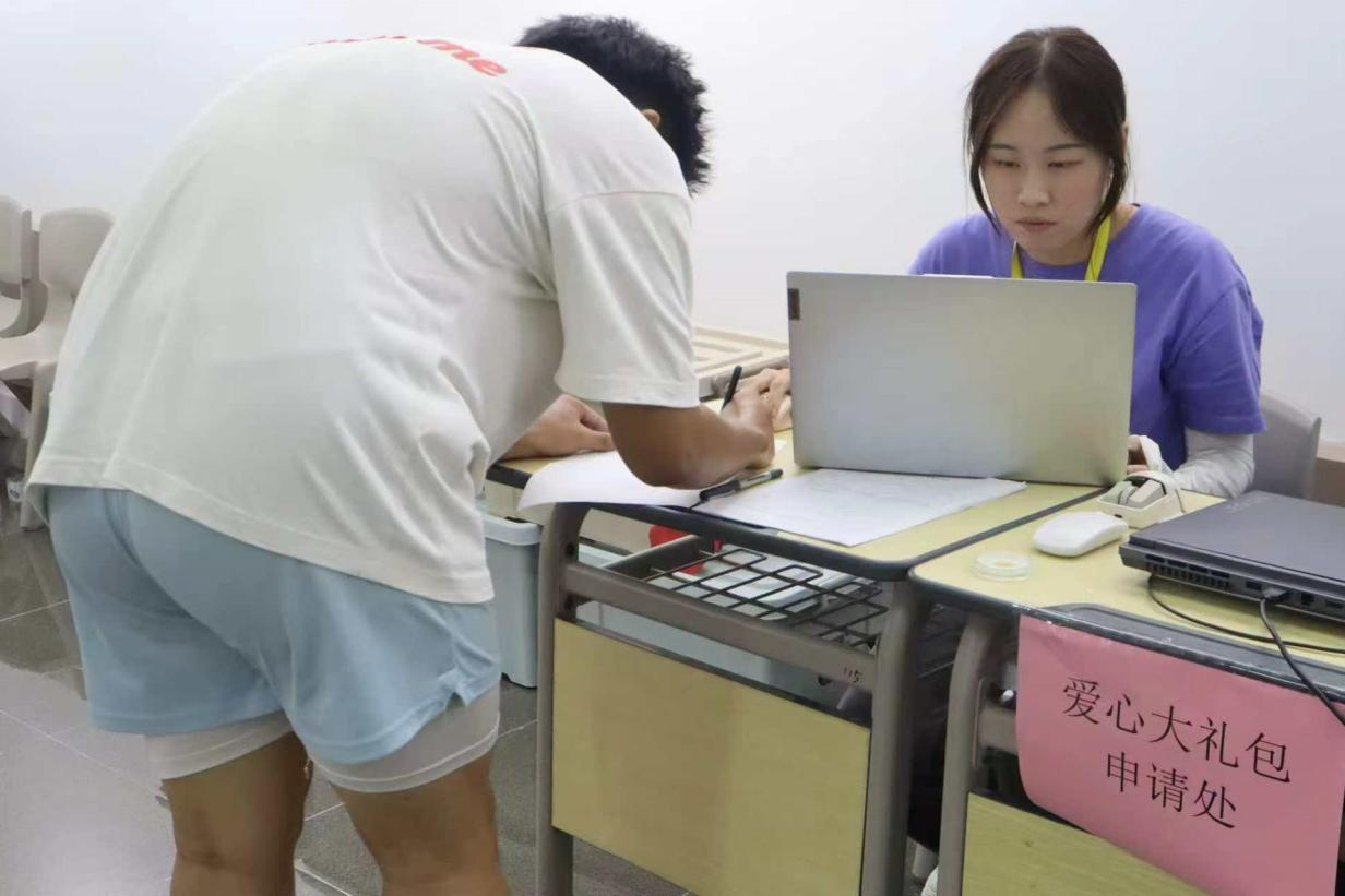 活动当天,辅导员周梦琦带领新生接待志愿者前往仓库领取了爱心大礼包。爱心大礼包括洗衣液、水杯、纸巾、肥皂等等,确保了新生的基本生活需求得到满足。