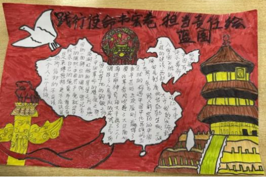 比赛现场,同学们全神贯注地进行创作。有的画作生动地描绘了中国龙的雄伟,有的则勾勒出万里长城的壮丽,还有用画笔描摹出不同时代的青年为国奋斗的故事。他们用色彩描绘中国梦,用文字书写家国情,一幅幅充满家国情怀的作品在画纸上逐渐呈现。