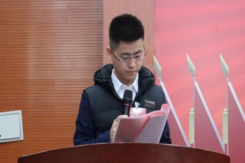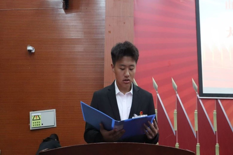 学院学管就业秘书助理金福刚致开幕词。他表示,历届学生会成员求真务实、开拓进取,取得了很多可喜的成绩。希望新一届成员们能取得更大突破,为强国建设和民族复兴努力。同时,他号召全体学生干部继续发扬积极精神,牢记初心,带领同学们传承红色基因。