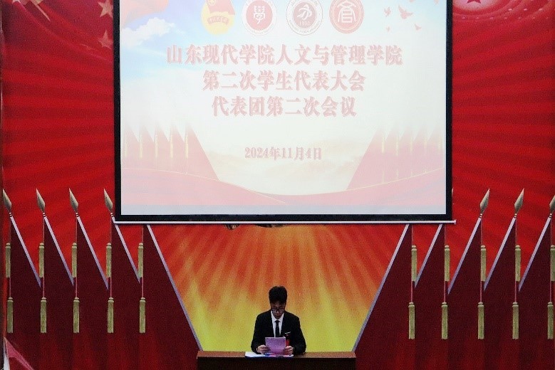 会议由王晟霖同学主持,全体代表讨论了《山东现代学院人文与管理学院第十五届学生会工作报告》,审议了《山东现代学院人文与管理学院第二次学生代表大会组织章程(24年修订版)(草案)》。