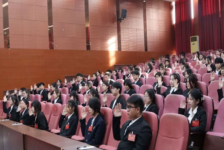 会议由学院办公室主任兼学管就业秘书唐淼青主持,各个学生代表在听取大会筹备情况报告。审议通过了《大会代表资格审查报告(草案)》《大会学生会主席团名单(草案)》《大会议程(草案)》《大会日程(草案)》,审议通过了《大会选举办法(草案)》,大会通过《总监票人、监票人、总计票人、计票人名单(草案)》。