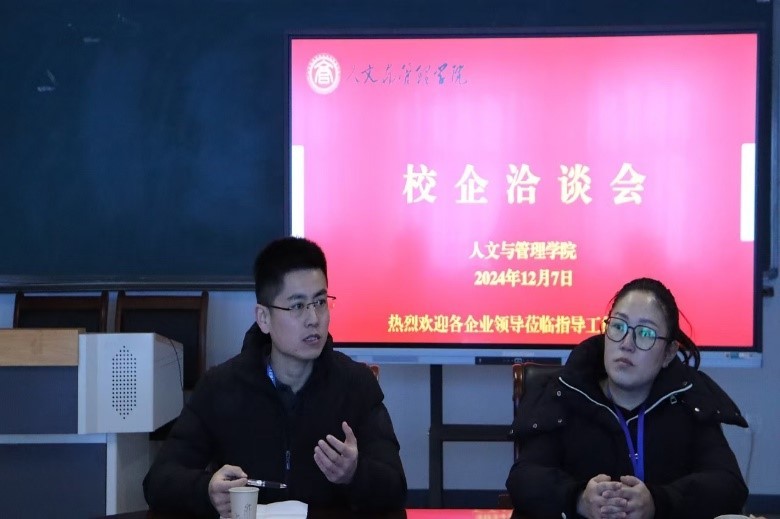 为贯彻落实教育部关于“高校书记校长访企拓岗促就业”专项行动的工作部署,做好毕业生就业服务工作,12月7日,人文与理理学院在科研楼511室和多家企业单位负责人展开了校企洽谈会,共同探讨校企合作的新模式与新机遇。