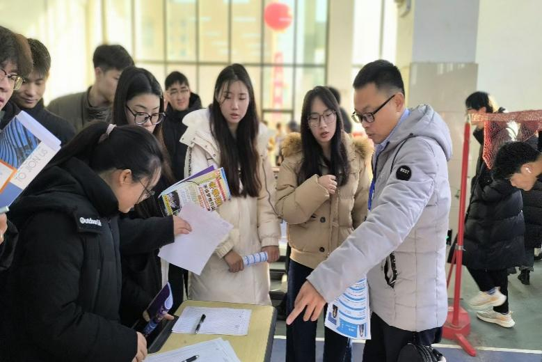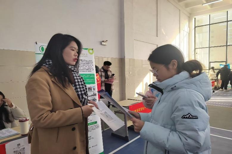 会场内,来自不同专业的学生们手持精心准备的简历,怀揣着对未来的期待,穿梭于各个招聘展位之间。他们积极与企业招聘人员交流,了解企业的招聘需求、岗位设置、薪资待遇等信息,并充分展示自己的专业知识和实践能力。