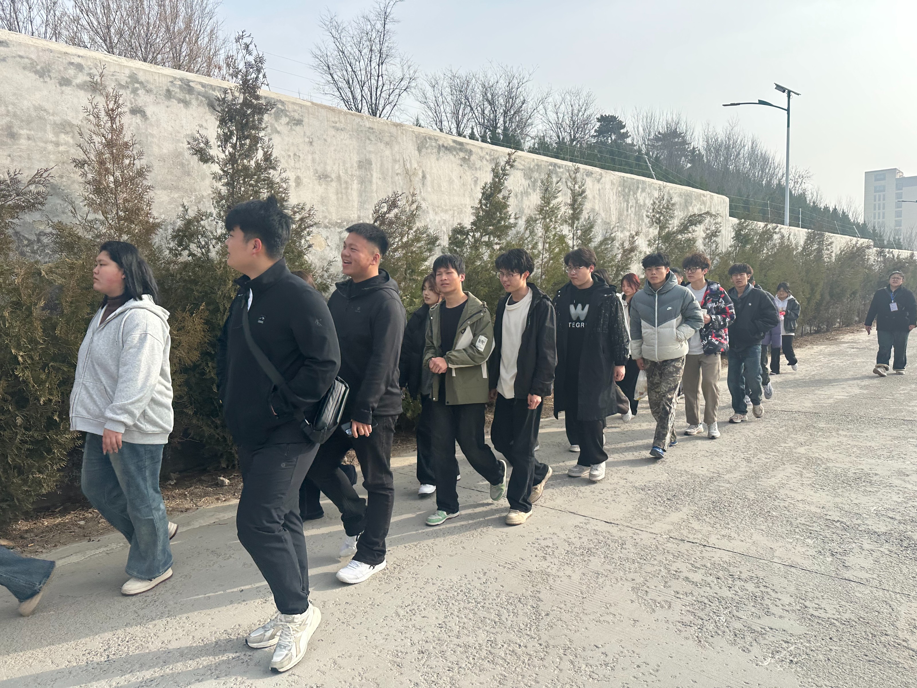 当日清晨8点,全体参与人员随着领队一声令下,队伍有序出发。本次徒步路线全长约8公里,涵盖山林小径、田间坡道等多样化地形,既考验体能又充满探索趣味。行进过程中,同学们自发形成互助小组,通过共享负重、接力搀扶等方式践行"携手同行"理念,全程实现"零掉队"目标。