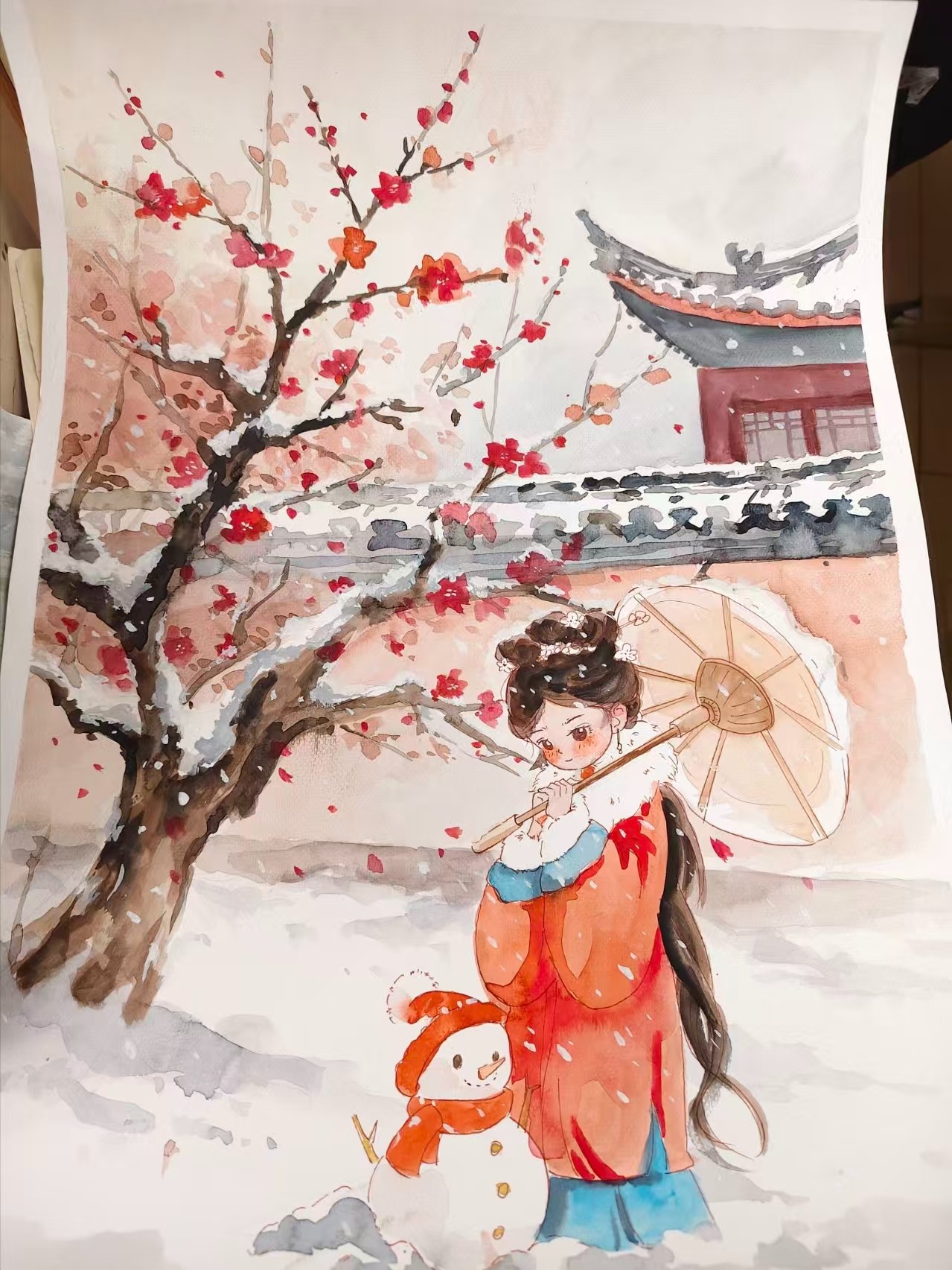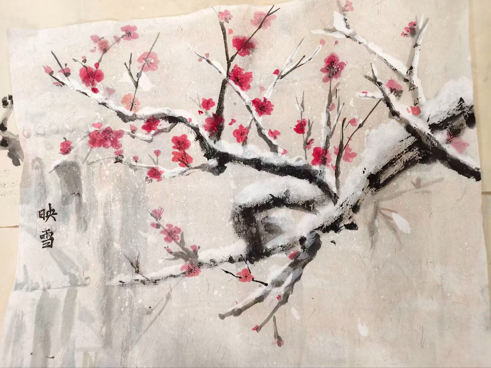 本次比赛以冬日意象为创作主线,巧妙融合“寒梅傲雪”的坚韧品格与“围炉夜话”的温情场景,旨在引导学生通过艺术表达感悟自然之美、生活之暖与文化之韵。活动现场气氛热烈,参赛学子全情投入,挥毫泼墨间尽显才情。有的作品以工笔细描寒梅凌霜斗雪之姿,枝干苍劲、雪花晶莹,彰显出不屈不挠的精神气质;有的聚焦家庭团聚、友人共话的温馨画面,笔触温暖细腻,洋溢着浓浓的人间烟火气;更有同学将传统水墨技法与现代视觉语言相融合,创造出虚实相生、意境悠远的艺术效果,充分展现了新时代大学生深厚的艺术功底与蓬勃的创新思维。