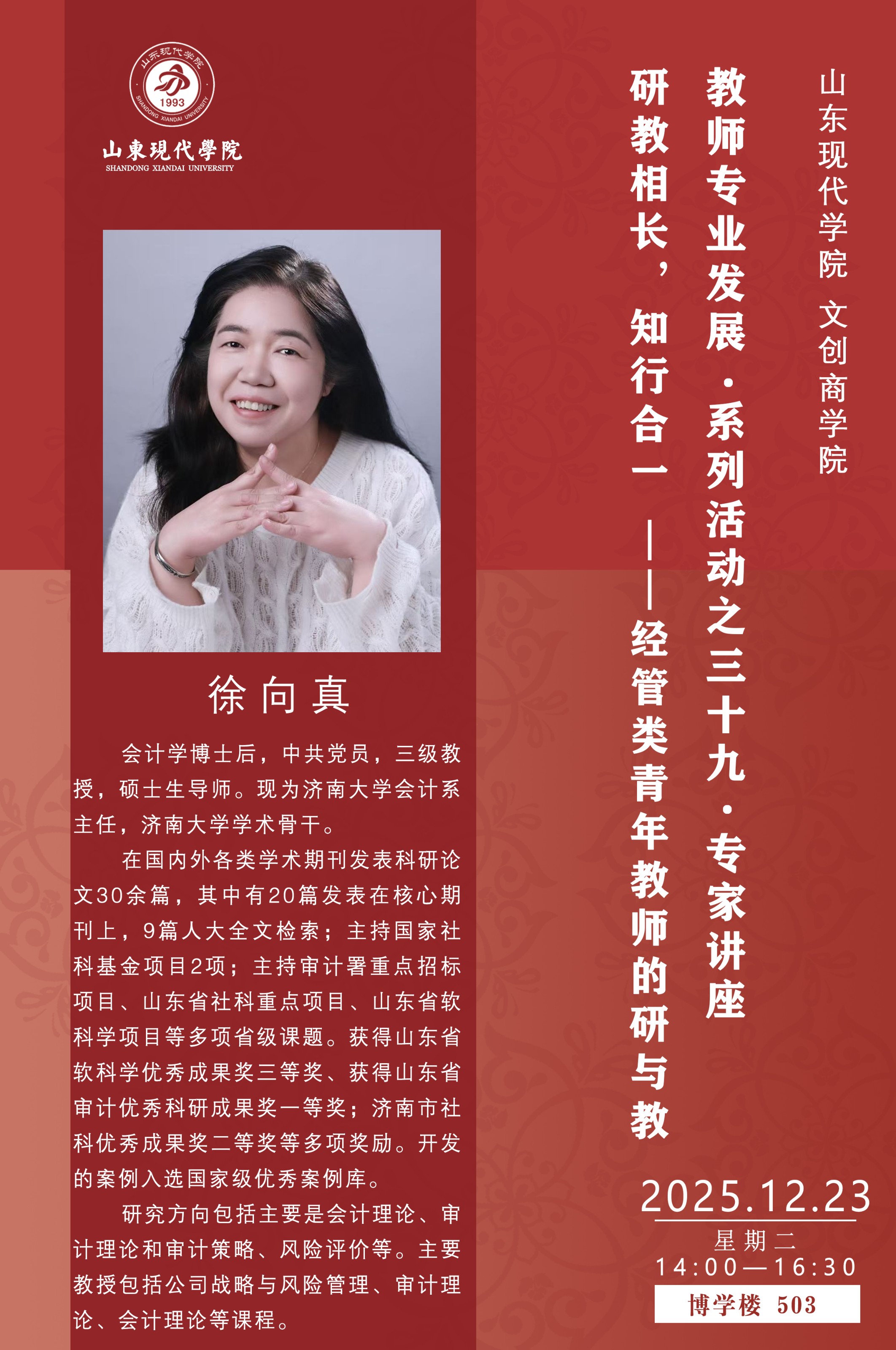 教师专业发展•系列活动之三十九•专家讲座 研教相长,知行合一----经管类青年教师的研与教